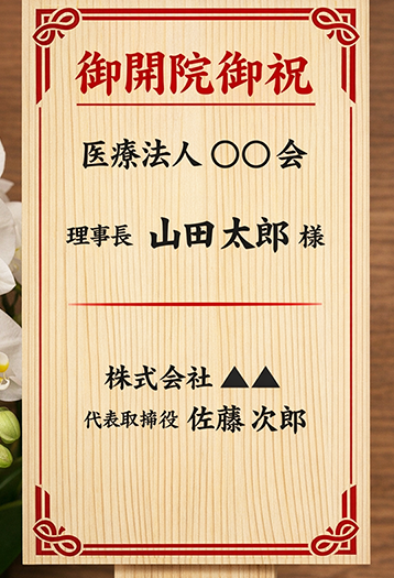 ※ 医療機関への開院祝いで迷った場合は、上記の形式が最も一般的で無難です。