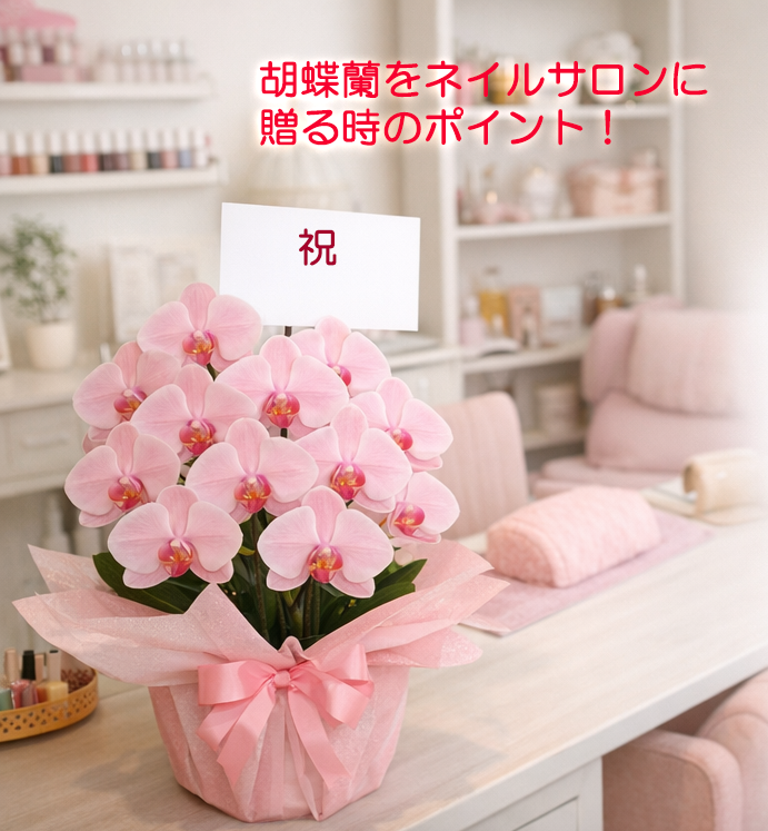 ネイルサロンは10坪前後の小規模店舗が多く、大きすぎる花は圧迫感が出ます。