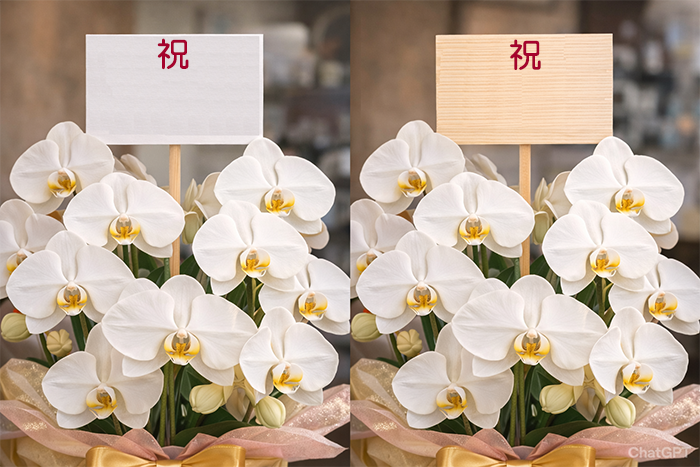 胡蝶蘭では、花そのもの以上に立札の内容が重要とされています。誰から贈られたのかを正確に伝える役割があるためです。